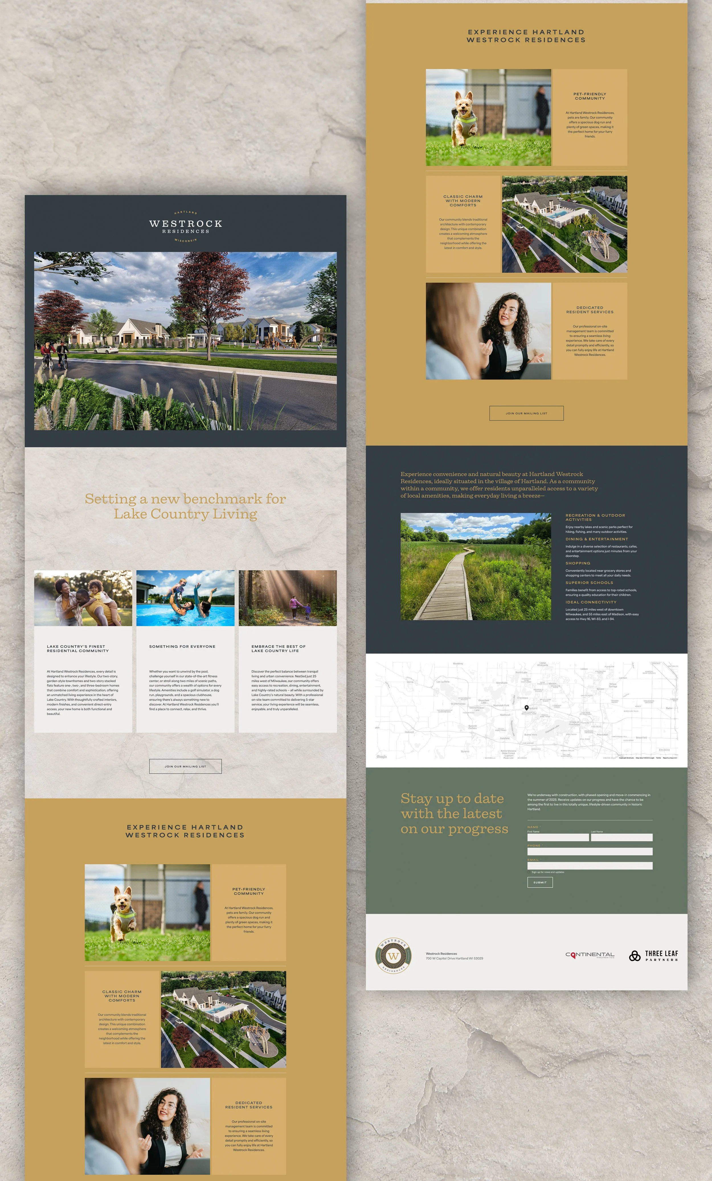 Located in fast-growing Lake Country west of Milwaukee, Westrock is a unique development of townhomes and apartments that have been thoughtfully designed within a hidden landscape that was once home to a sand and gravel quarry.